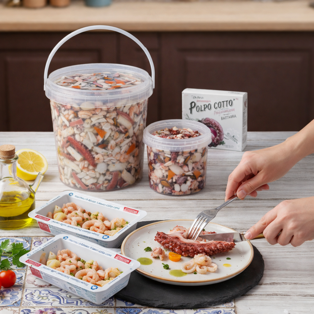 Insalata di mare in salamoia versatile e bilanciata, pensata per la ristorazione professionale, perfetta per ogni utilizzo in cucina e lavorazioni rapide.